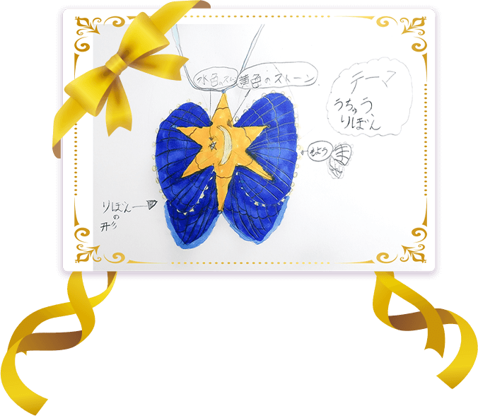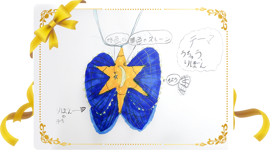 宇宙をイメージしたリボンの上に星や月が描かれた壮大な世界観が素晴らしいです!